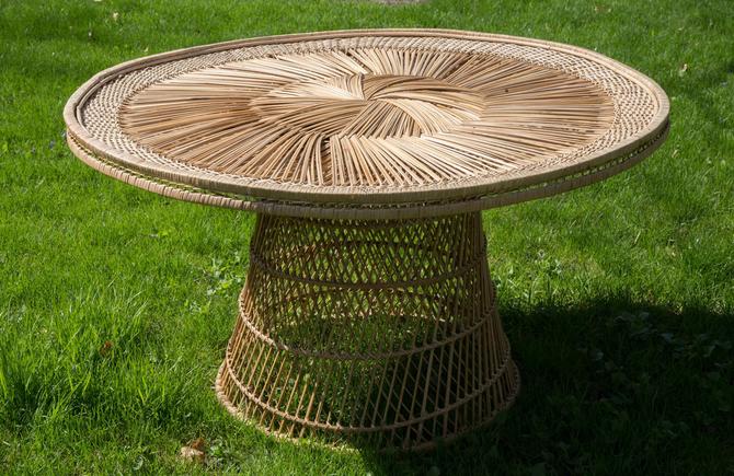 Shipping Not Free Vintage Round Rattan Dinning Table With Glass Top Cocktail Table Dining Table Local P U Chicago Area Or Your Shipper By Worldofwicker From World Of Wicker Of Chicago Il Attic